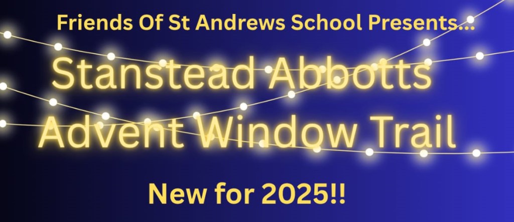 The Friends of St Andrews School presents Stanstead Abbotts Advent Window Trail. A brand new fundraiser for 2025!