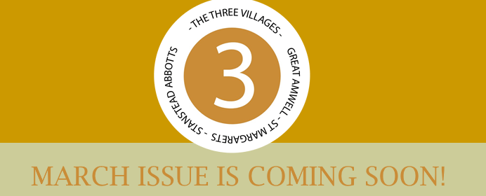 You will be able to pick up your copy of The Three Villages Magazine: Issue 17 at the start of March across the three villages. Don’t forget that our magazine is now FREE!
