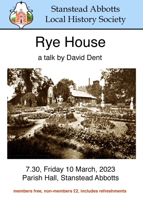 Stanstead Abbotts Local History Society are hosting a talk on Rye House by David Dent this Friday 10th March at 7.30pm. Please see the poster below for all the information.