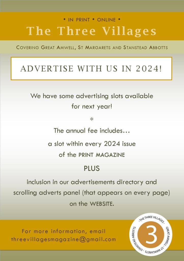 The June Issue of The Three Villages Magazine is very soon off to the printer, so we are on schedule for 1st June publication. If you haven’t picked up a copy of the March issue, make sure you do before they disappear!