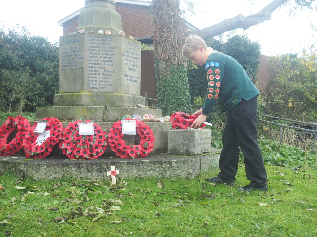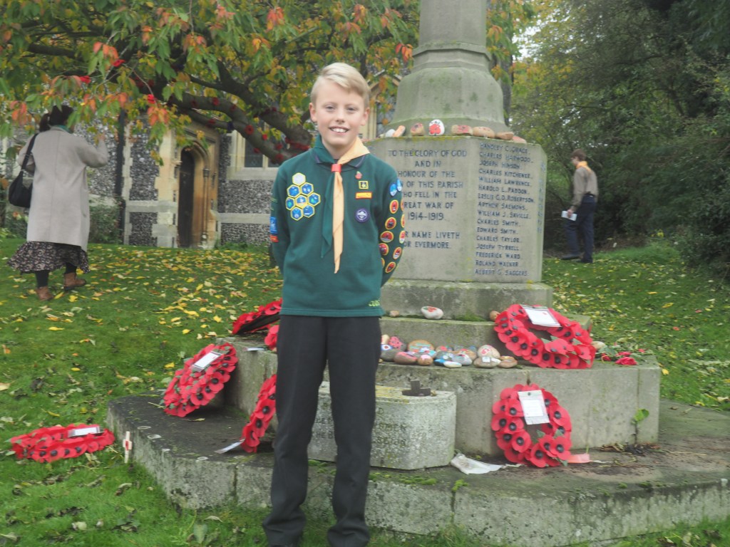 In glorious autumn sunshine, members of the Scouting family gathered at the Great Amwell War Memorial to honour those who gave their lives in service to our country.