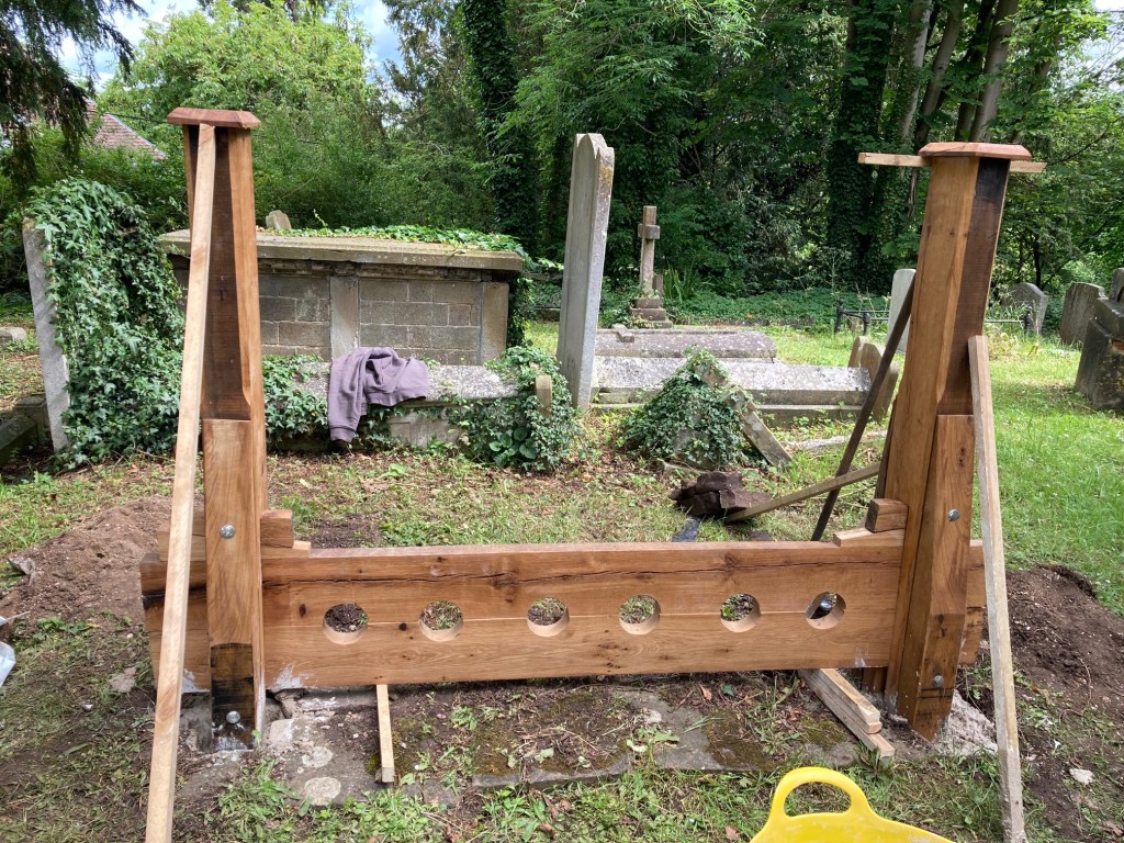 The previous stocks in the St John the Baptist’s Churchyard had deteriorated and the specialist advice was to replace them. Great Amwell Parish Council have employed the local building firm, Between Time, and the stocks have just been put in place.