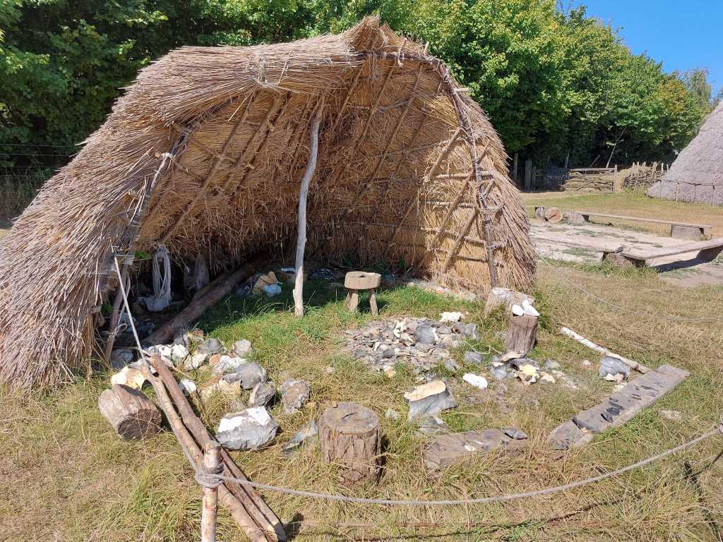The five-day Webster’s site Community Archaeological Dig at Netherfield Lane in June this year has prompted more research by the Heritage Group. They went to view a 2020 AD recreation of a building/shelter from evidence similar to that found close to the site in Roydon Road. It’s of the Mesolithic Age (12,000–6,000 years ago) at Butser Ancient Farm, Hants.